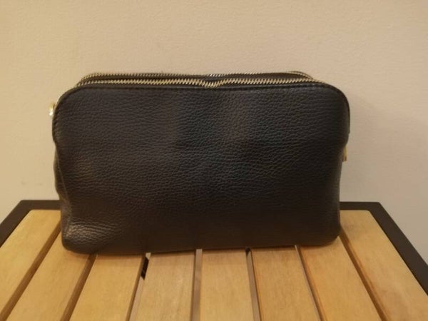 Leren Crossbody tas met 3 ritsvakken Zwart (gouden ritsen)