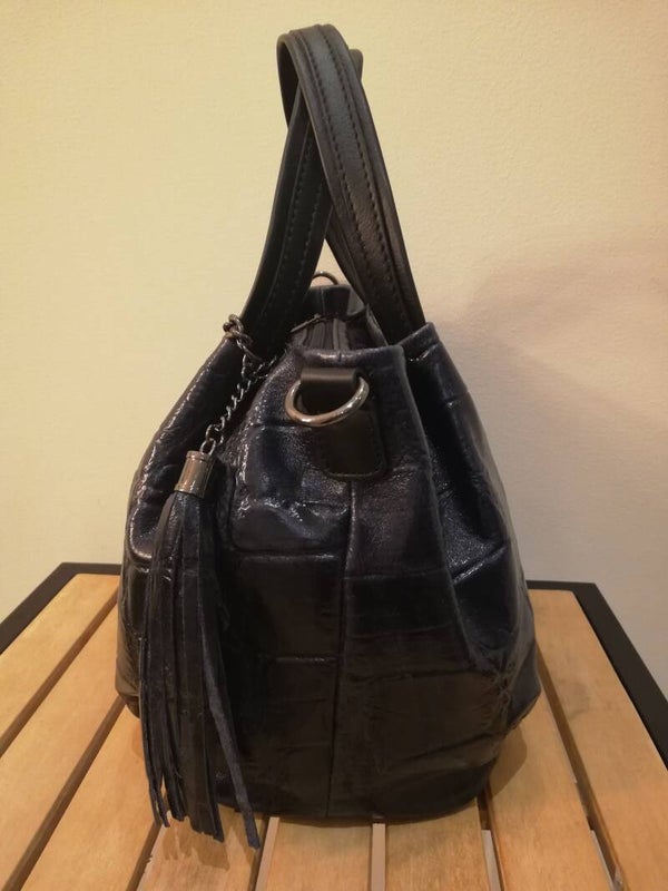 Leren Handtas met Ronde Afwerking Donker Blauwe Croco Print