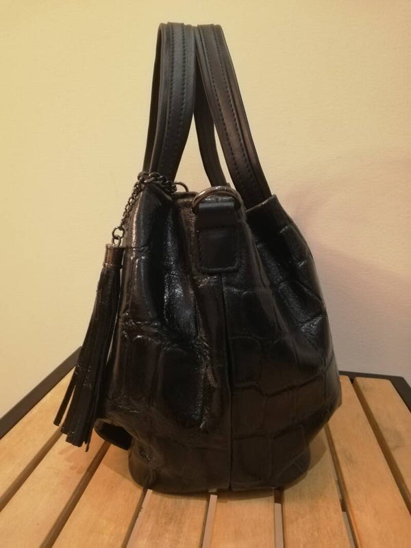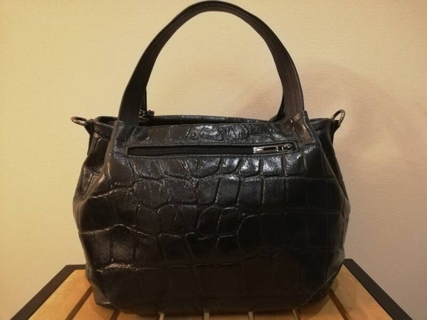 Leren Handtas met Ronde Afwerking Zwart Croco Print