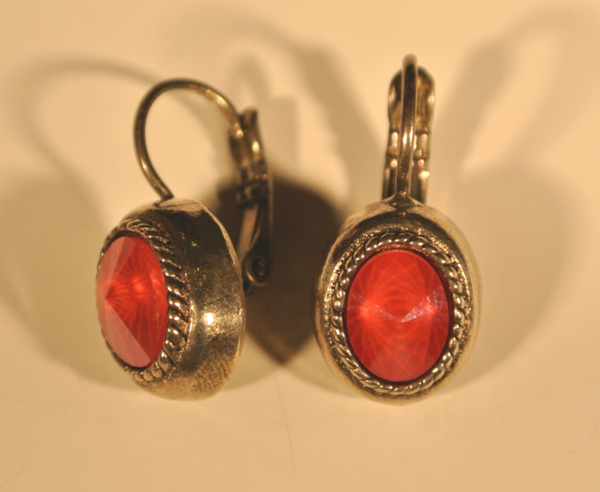 Camps & Camps Oorbellen silver plated dormeuse ovaal Rood
