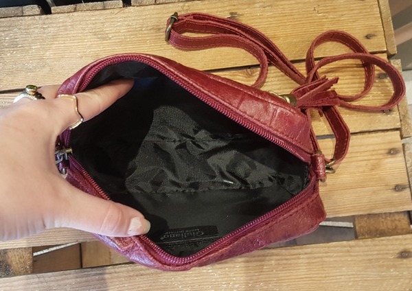 Leren Schoudertas Croco met Kwastje Bordeaux Rood