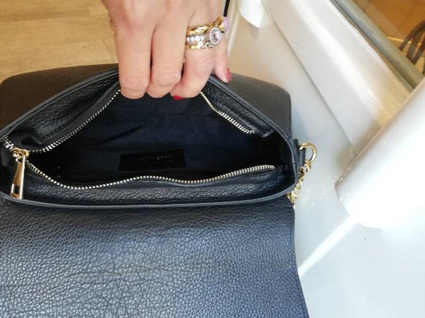 Leren Hand/Schoudertas met gouden draaisluiting details Zwart