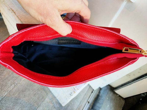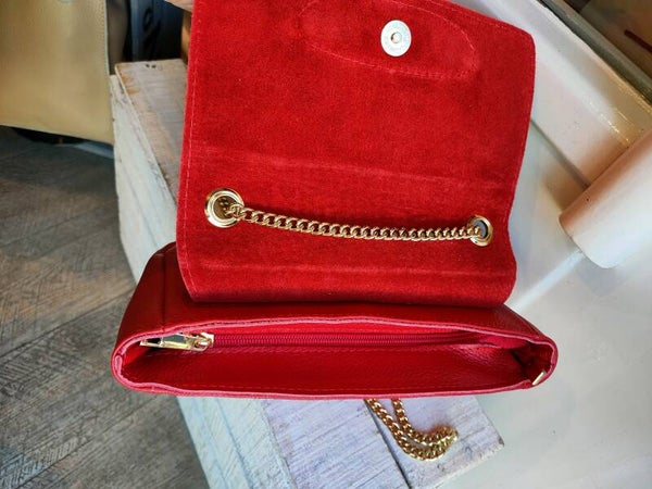 Leren Chique Schoudertas met kettingdetail Zwart en Rood