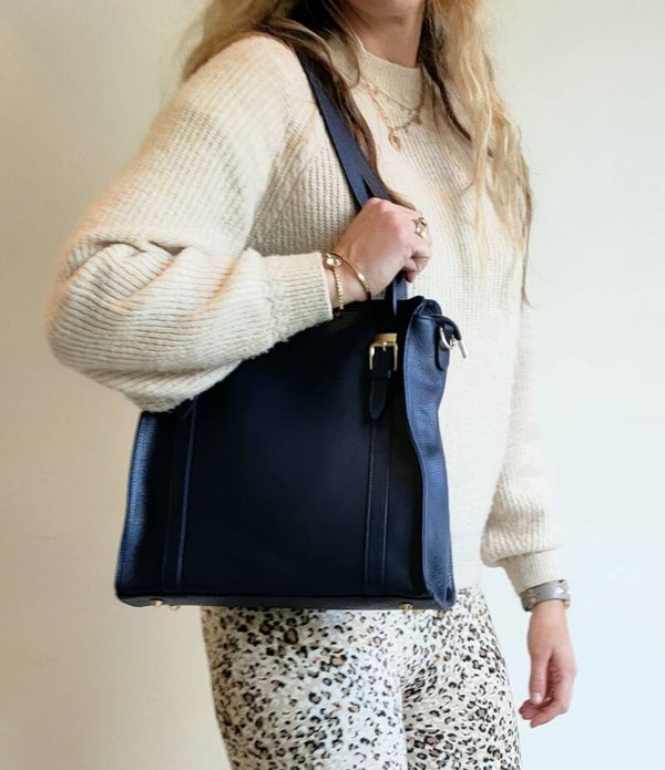Leren Chique Schoudertas met Gouden Gesp Details Donkerblauw