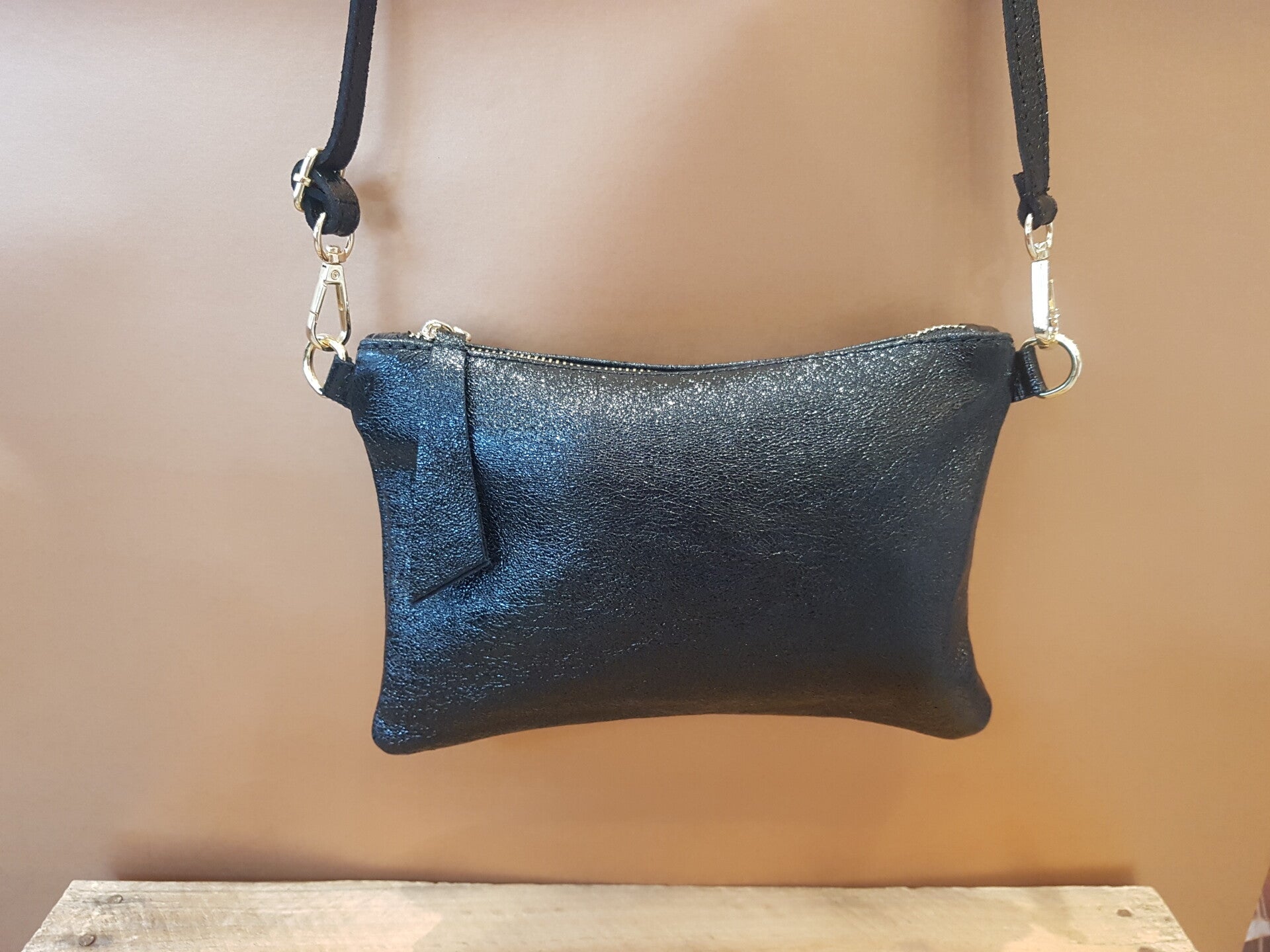 Leren Glitter Crossbodytasjes Zwart en Brons