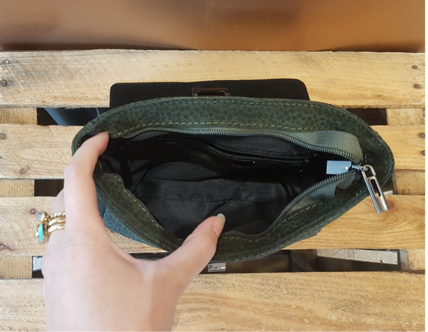 Leren Suède Groene Handtas /Crossbodytas met zilveren schakelketting