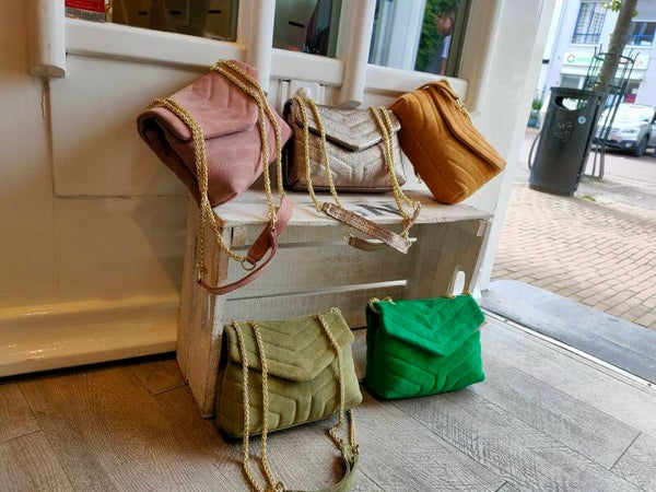 Leer of Suède Crossbodytas V met Flap Diverse Kleuren